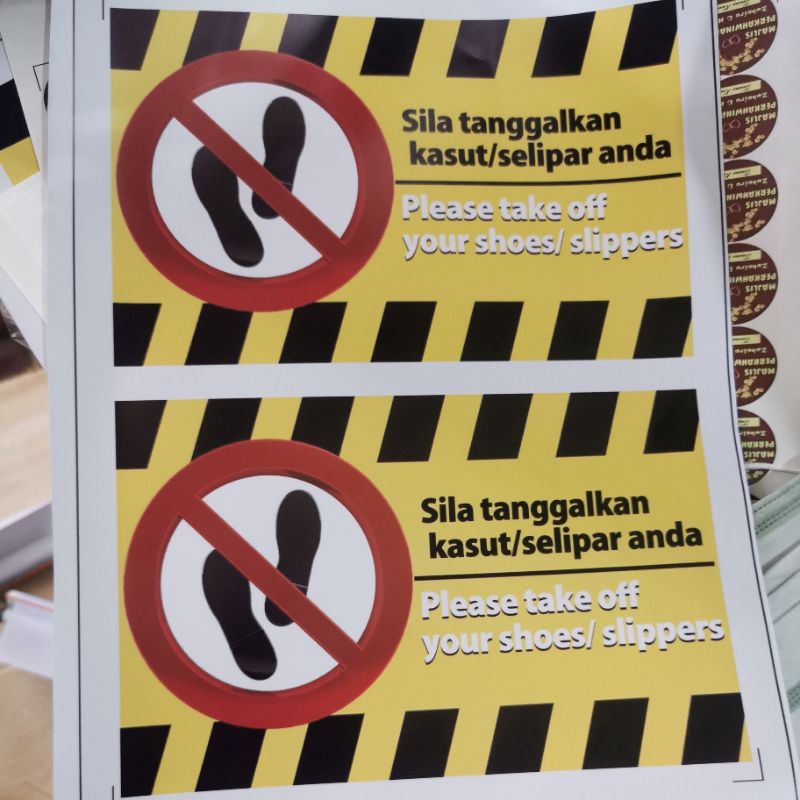 Kuala lumpur · print4u shoe off sign sila tanggalkan . Kasut/selipar anda ( buka sebelah dalam premis kami ) wajib menggunakan. Stick no bill dilarang menampal notis 不准招贴 (pvc sticker) (size 100 x 230 mm).